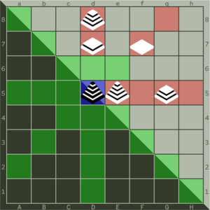 - A unit in the trench is protected from frontal and trench attacks — an enemy unit cannot capture it by advancing from its own side, nor can it capture another unit if both are in the trench.